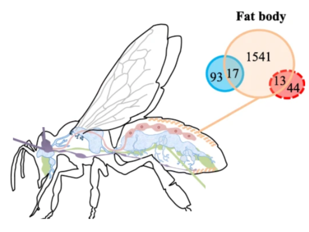 Don’t worry about the numbers—this diagram is just to show where the fat bodies (trophocytes) are located in the abdomen, which is where the iron granules are stored.